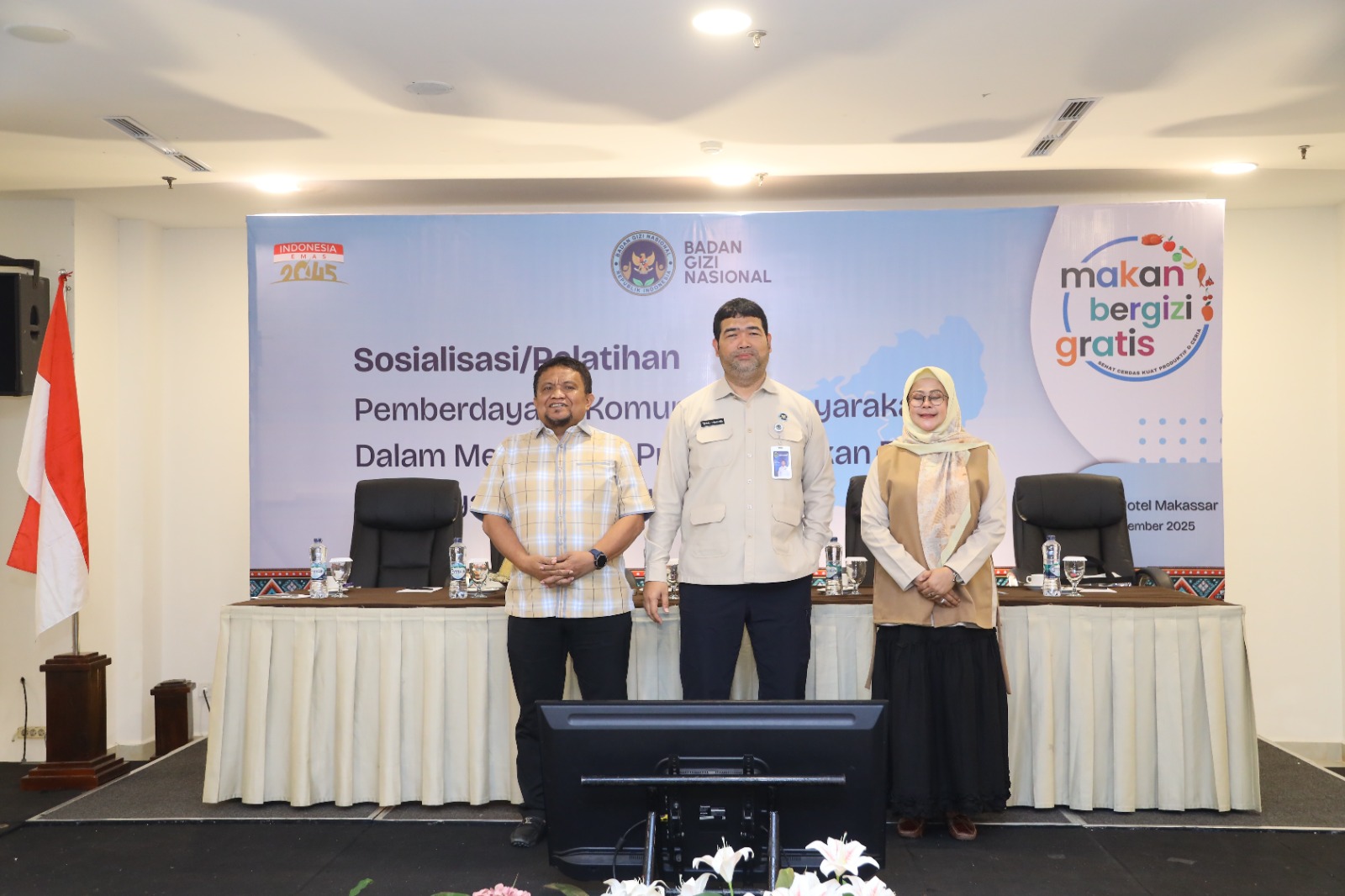 Acara yang dibuka direktur Pemberdayaan dan Partisipasi Masyarakat BGN, Tengku Syahdana, turut dihadiri Kadis PMD Sulsel Muhammad Saleh, Kadis Kesehatan Sulsel Ishaq Iskandar, Kadis Koperasi & UKM Sulsel Andi Erni, serta Kareg KPPG Kota Makassar Handayani.